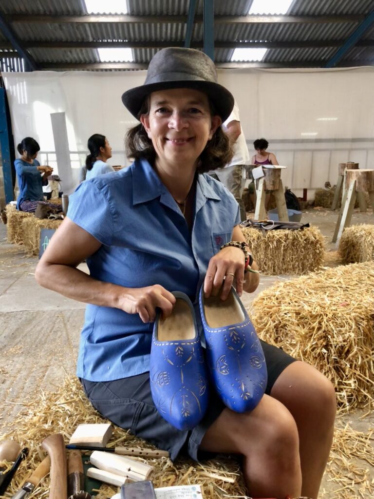Ik ben dol op decoratietechnieken en kleur, en heb veel van mijn gereedschappen gedecoreerd. Op festivals zie je me steevast in zelf gedecoreerde klompen rondlopen.