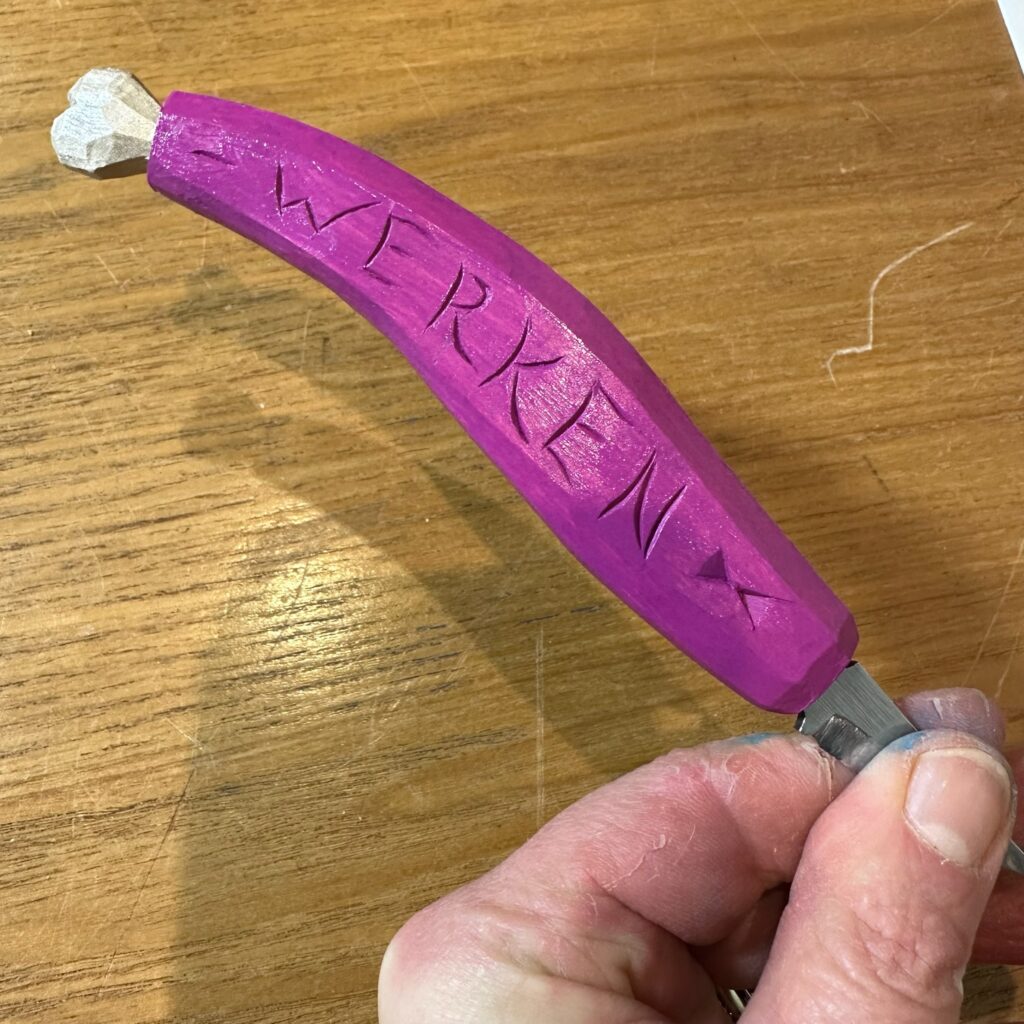Maar met een boek lezen alleen kwam ik er niet. Want hoe hou je een mesje goed vast voor decoratietechnieken? Hoe snijd je effectief en handig, bijvoorbeeld op een lepel? Dat leerde ik uit live workshops met bijvoorbeeld Carolina Smoorenburg, Jane Mickelborough, Maryanne McGinn, Deborah Schneebelli-Morell en en Jögge Sundqvist.