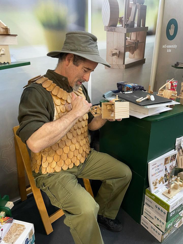 Van vrijdag 10 tot en met zondag 12 april 2026 kun je een heel bijzondere workshop volgen: een automata (een mechanisch apparaatje) maken van hout, met Tim Stevenson uit Engeland. Je leert de mechanismen van automata van hout en neemt aan het einde van het weekeinde je zelfgebouwde mechaniekje mee naar huis. Vraag je je af hoe automata eruit zien en bewegen? Check de Instagram-pagina van Tim, met briljante dingen van zijn hand.