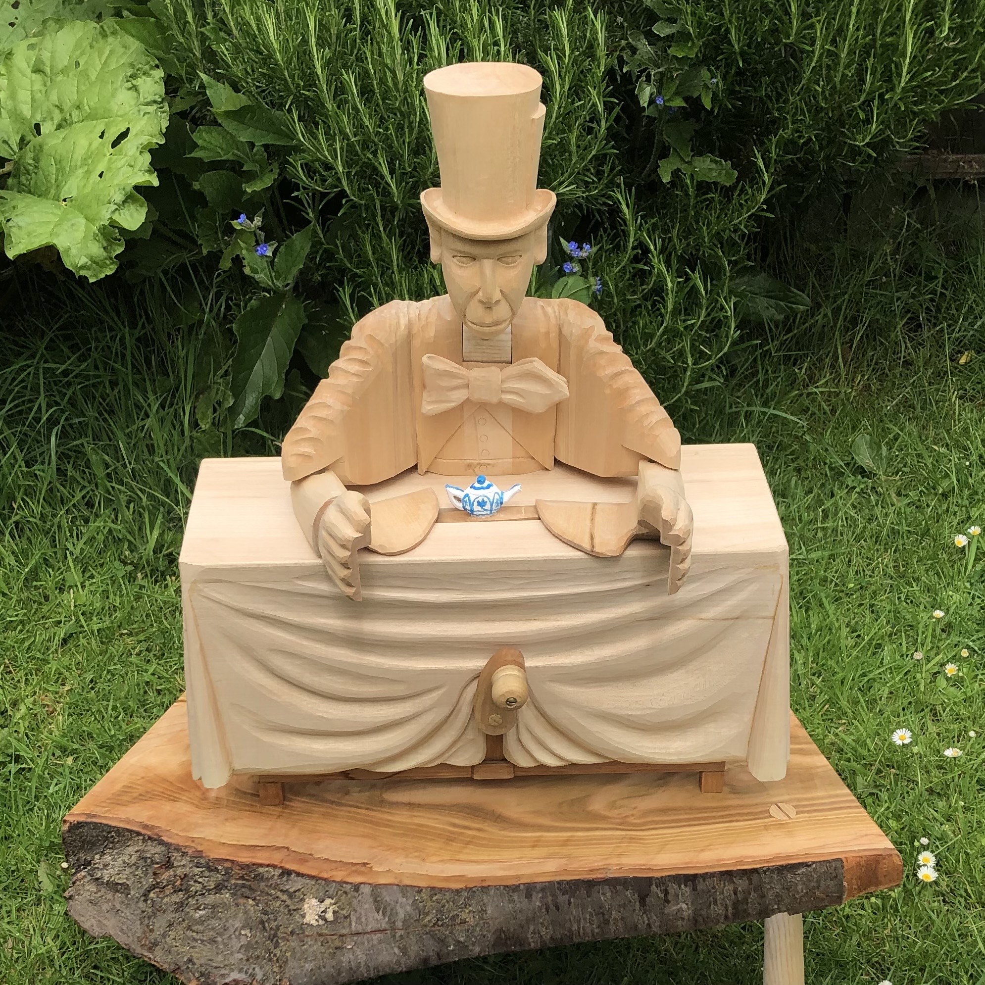 Tim maakt al vele jaren automata en kinetische sculpturen van hout. Hij geeft workshops en cursussen in het Verenigd Koninkrijk, onder andere bij Bodger’s Ball en West Dean College.