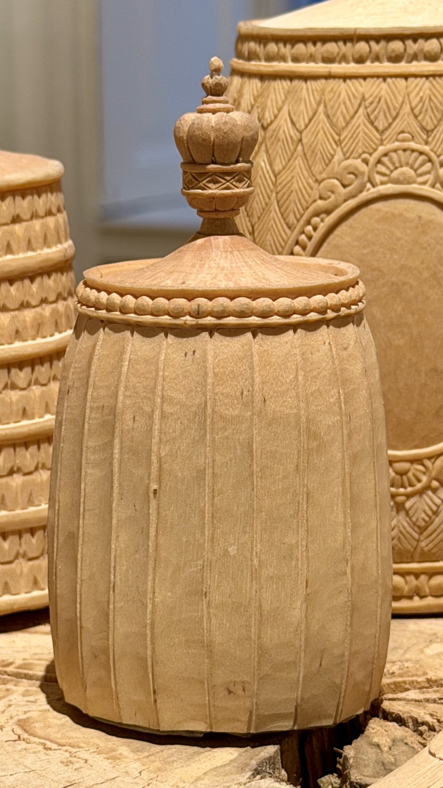 Onder de naam Spångossen deelt hij zijn werk op Instagram: prachtige krimppotten en lepels, met verfijnd uitgesneden detals.